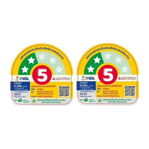 ได้รับฉลากประหยัดไฟเบอร์ 5 ระดับ 2 ดาว เย็นสบายพร้อมช่วยลดค่าไฟ